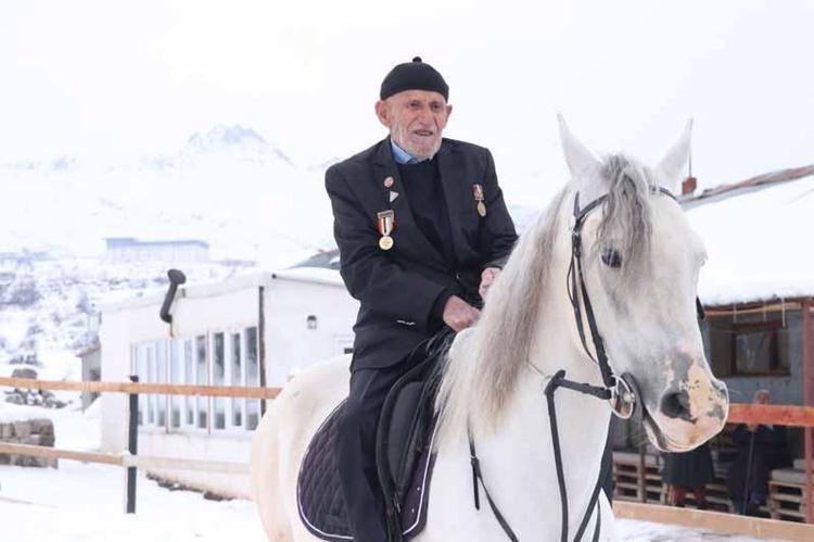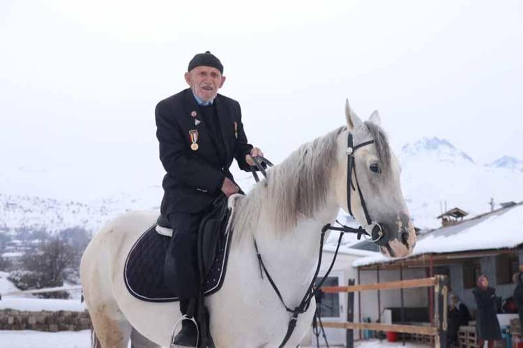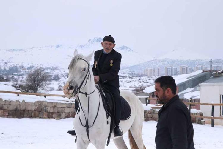 Kore Gazisi Şevki Kanak (96), gençliğinden gelen at binme sevgisini, damadının yardımıyla devam ettiriyor. Kanak, “Ben çobandım. 1 yıl Kore’de çarpıştım. Gençliğimde at biniyordum. At üzerinde olmanın duygusu başka" dedi.