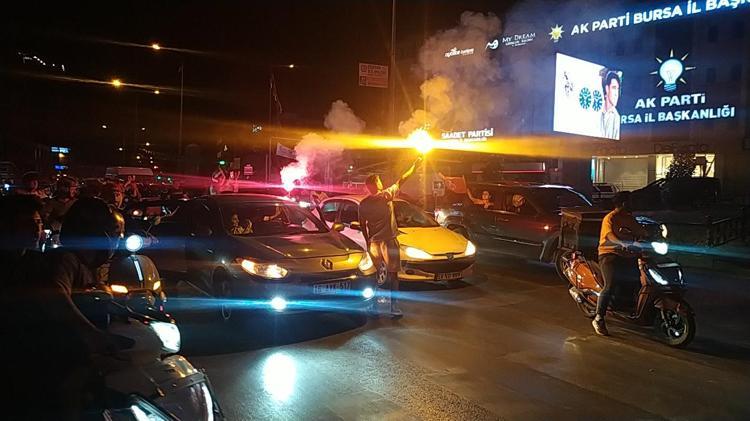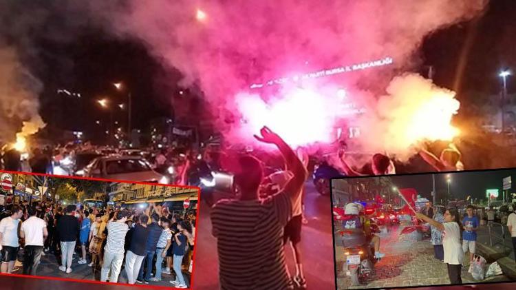 Bursa'da milli maçın son saniyelerine kadar heyecanla takip eden vatandaşlar, çalınan son düdüğün ardından meydanlara akın etti. Çeşitli meydanlarda araçlarından inen vatandaşlar, A Milli Futbol Takımı'nın galibiyetini, meşale ve tezahüratlarla kutladı.