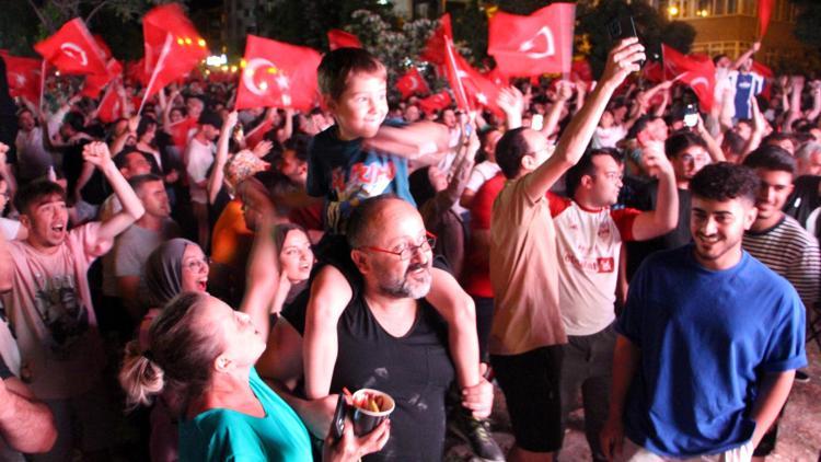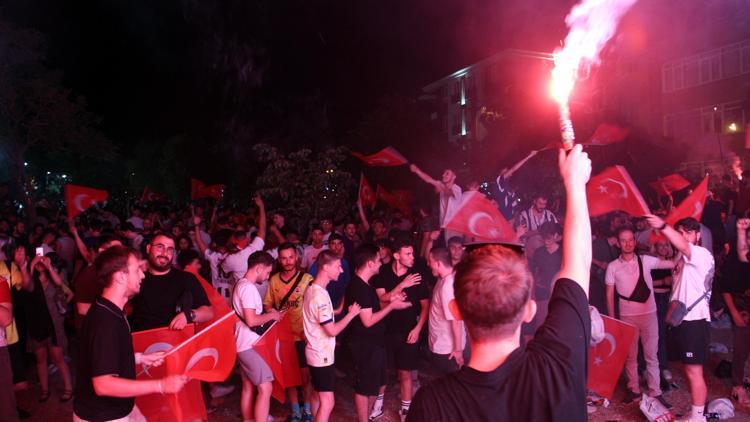 A Milli Futbol Takımı, EURO 2024 son 16 turu maçında Avusturya'yı 2-1 mağlup etti ve çeyrek finale yükseldi. Ankara, İzmir, Edirne ve Bursa'da taraftarlar galibiyeti coşkuyla kutladı.