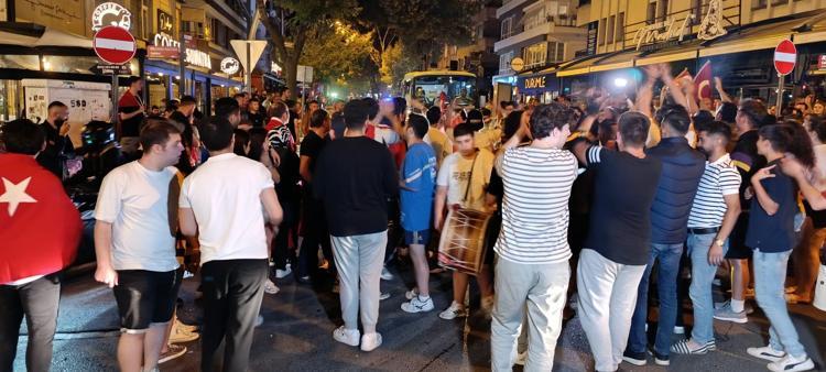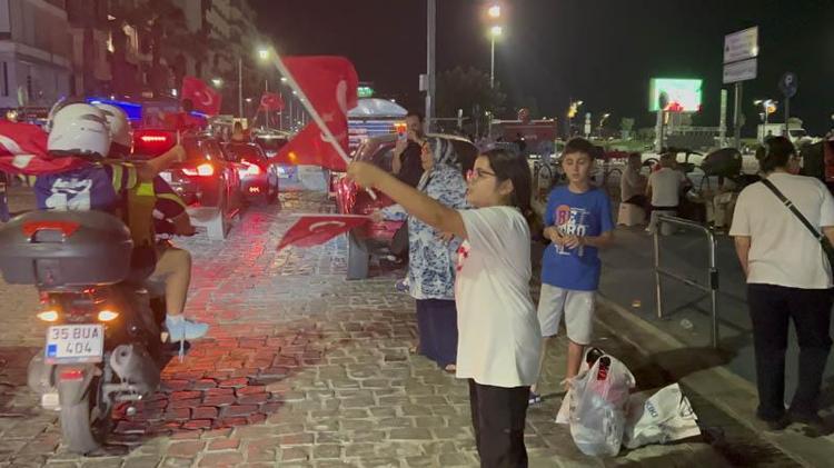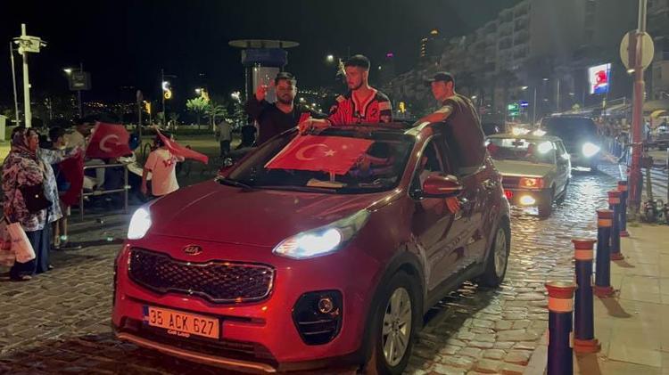 Kentin cadde ve sokaklarında araçları ile konvoy yapan vatandaşlar, coşku ile kutlama yaptı. Çok sayıda vatandaş, Gündoğdu Meydanı'na ve Kordon'a akın etti. Buraya gelen vatandaşlar, A Milli Futbol Takımı'nın galibiyetini dans ederek kutladı. Öte yandan, İzmir İl Emniyet Müdürlüğü ekipleri, kentin farklı noktalarında güvenlik önlemleri aldığı öğrenildi.