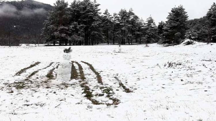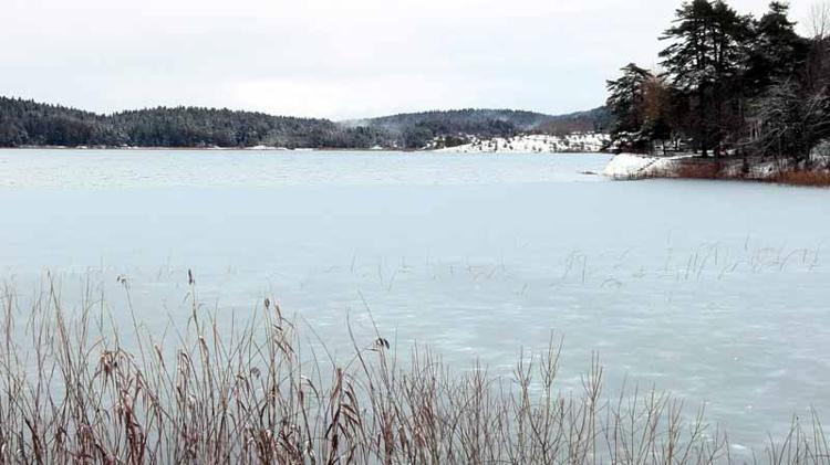Abant’ta kar kalınlığı yaklaşık 5 santime ulaşırken, gölün kıyı kesimleri buz tuttu. Karla kaplı milli parkta eşsiz manzaralar oluştu.