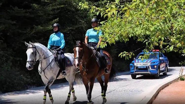 Atlı jandarma timi ayrıca tatilcilerin ilgi odağı oluyor. Diğer yandan Jandarma Genel Komutanlığı, atlı jandarma timimin görüntülerini sosyal medya hesaplarından paylaştı.