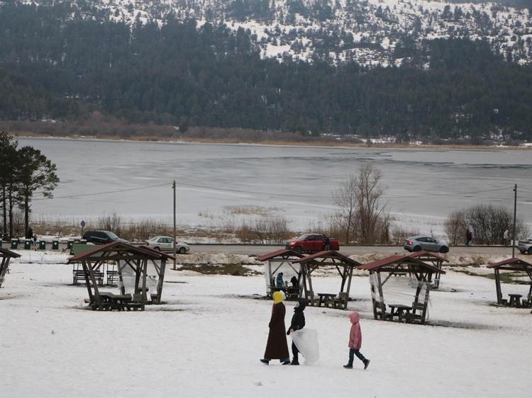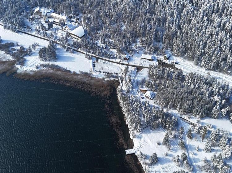 Kentin doğal güzellikleriyle ünlü Abant Gölü Milli Parkı, sömestir tatilinde ziyaretçi akınına uğradı. Bölgede bulunan otellerde konaklayan ve günübirlik aileleri ile birlikte tatil için Abant’a gelen çocuklar, karla kaplı tepelerden kaymanın keyfini çıkardı. Abant’ta etkili olan soğuk hava nedeniyle gölün bir bölümü buz tuttu. Çam ormanlarıyla çevrili Abant’ta gölün donmasıyla ortaya çıkan eşsiz manzara dron ile görüntülendi.