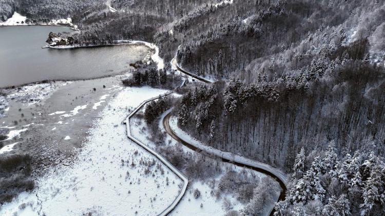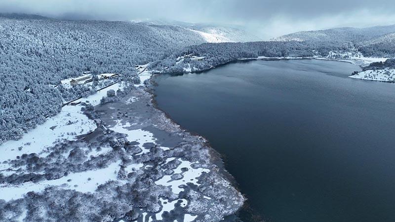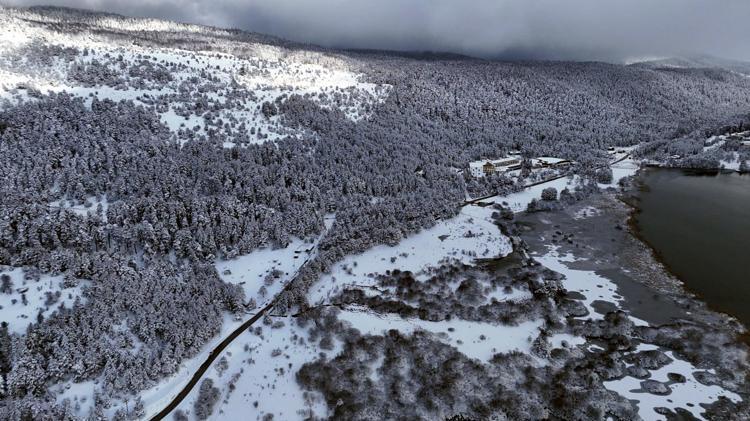 Kentin yüksek kesimlerinde iki gündür kar yağışı aralıklarla etkili oldu. Doğal güzellikleriyle ünlü Abant Gölü Milli Parkı, kar yağışının ardından karla kaplandı. Kar kalınlığı milli parkta yaklaşık 15 santimetreye ulaştı. Abant'ı çevreleyen çam ormanları ve yaylalarda beyaz güzellik oluştu. Kar yağışıyla birlikte ortaya çıkan manzara dron ile görüntülendi. (DHA)
