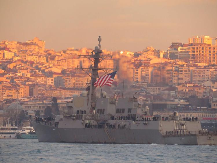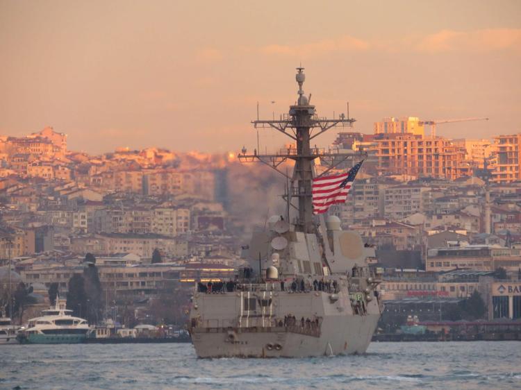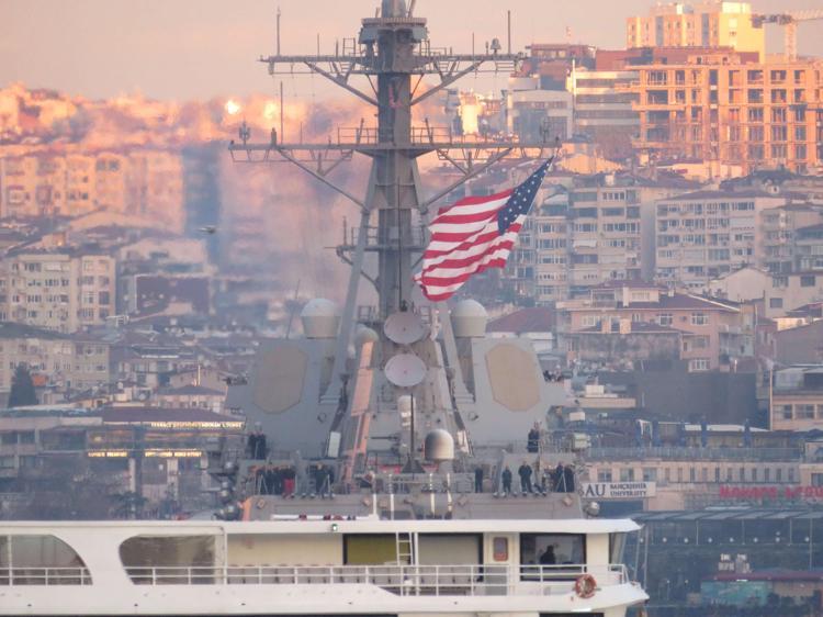 ABD donanmasına ait Arleigh Burke sınıfı savaş gemisi USS Nitze, saat 08.00 sıralarında İstanbul Boğazı'na Sarayburnu açıklarından girdi.