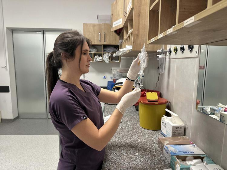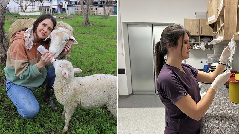 Aydın Adnan Menderes Üniversitesi Uygulama ve Araştırma Hastanesi'nde görev yapan hemşire Rümeysa Taşova (30), mesai saatlerinde acil yoğun bakım servisinde hastalara hizmet verirken, tatil günlerinde İzmir'in Menderes ilçesindeki aile çiftliğinde hayvanların bakımı ile ilgileniyor.