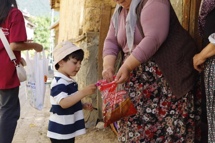 Bursa’nın Keles ilçesine bağlı Gelemiç Mahallesi'nde çocuklar, dini bayramlarda kapı kapı dolaşarak şeker ve tatlı topluyor. Osmanlı’dan kalma tarihi kerpiç evlerin yer aldığı mahallede, 700 yıllık 'adak toplama' geleneği, çocukların toplu halde koşarak evlere gitmesiyle benzerlerinden ayrılıyor.