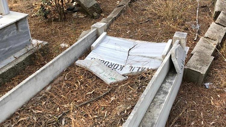 Aslanlı Mahallesi Tırmıl Mezarlığı'na sabah saatlerinde gelenler, mezar taşlarının kırıldığını fark edip, durumu jandarma ekiplerine bildirdi. Yapılan incelemede 20 mezarın taşlarının kırıldığı saptandı.