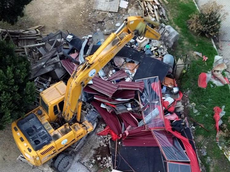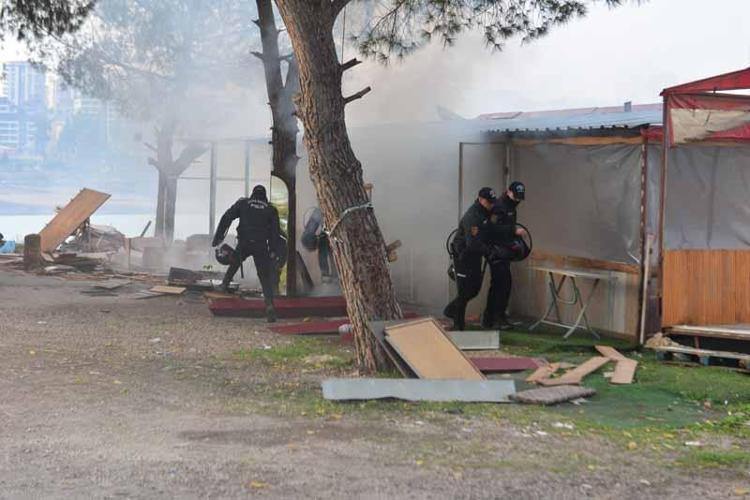 Adanın boşaltılması için verilen sürenin sona ermesinin ardından sabah saatlerinde iş makineleri yıkım için polis eşliğinde adaya geldi. Çevik kuvvet ekibi ile Toplumsal Olaylara Müdahale Aracı (TOMA) da çevrede güvenlik önlemi aldı. Yıkıma karşı çıkan esnaf, çalışmaları engellemeye çalıştı. Yıkıma karşı çıkan bir kişi polise direnerek bıçakla kendisine zarar verdi. Bazı işletme sahipleri de iş yerlerini benzin döküp yaktı. Çok sayıda kişi gözaltına alındı. Polis ekipleri, adanın tahliye edilmesi için kalabalık grupla müzakere ediyor.