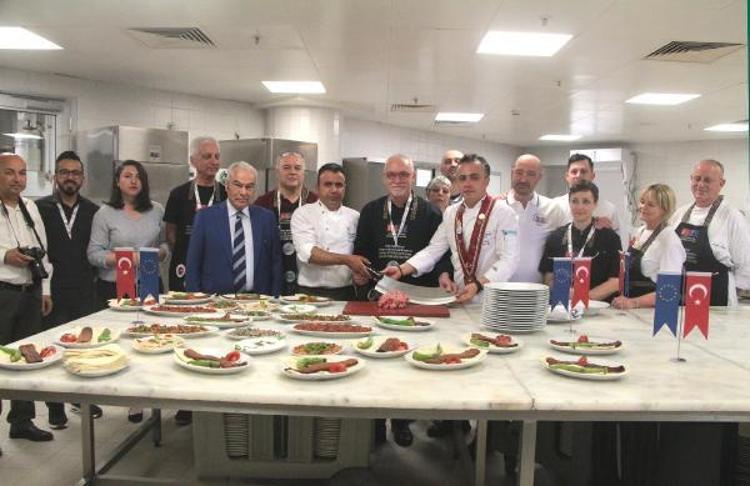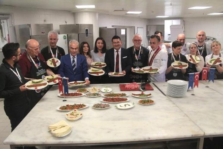 Kentteki bir otelin mutfağında, Türkiye’nin en popüler yemeklerinden Adana kebabını da yapmayı öğrenen şefler, zırhla et kıyıp, şişe sapladı. Daha sonra mangalda pişirilen kebaplar, lezzetiyle tam not aldı.
