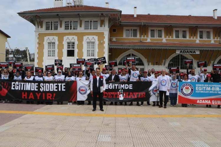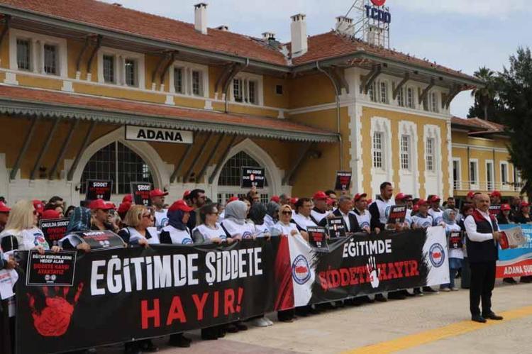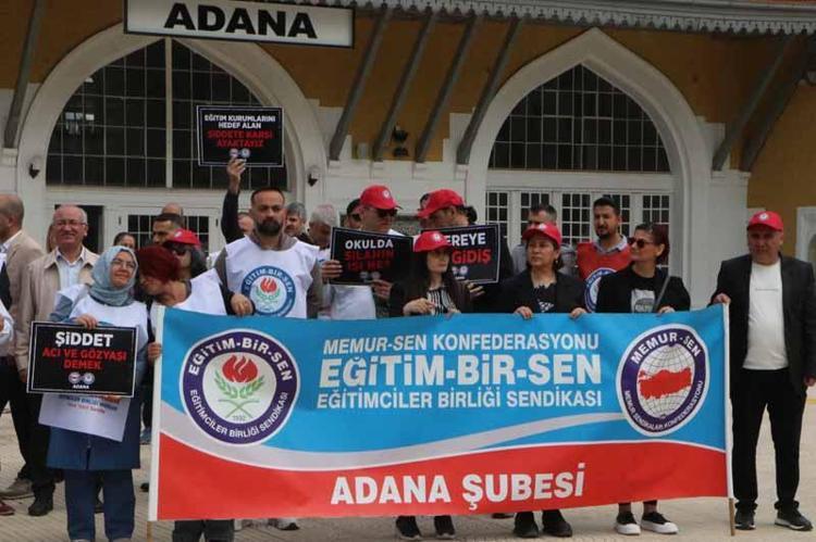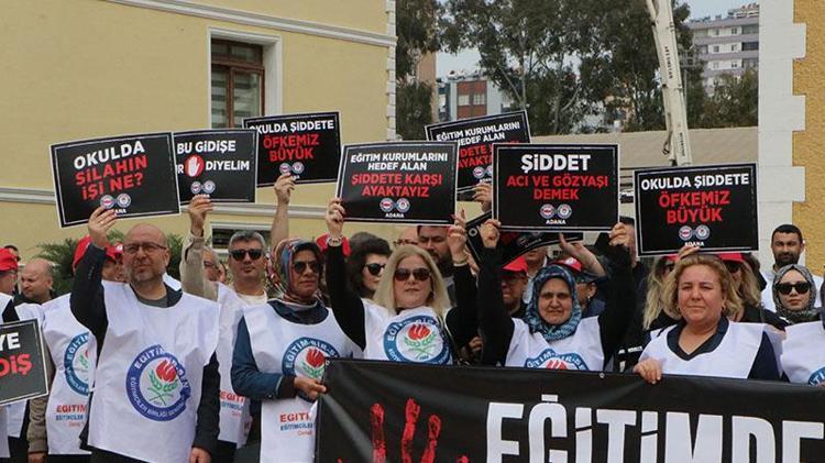 Şanlıurfa’daki okulda meydana gelen silahlı saldırının ardından, Adana’da öğretmenler, eğitimde şiddete ‘dur’ demek için iş bırakma eylemi yaptı.