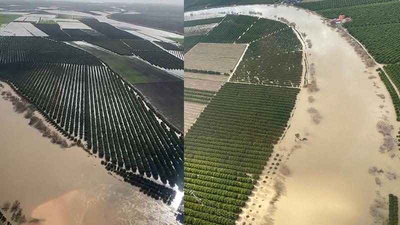 Adana'da Ramazan Bayramı'nda etkili olan sağanak ve yüksek kesimlerdeki karın erimesi sonucu baraj kapakları açıldı. Seyhan ve Ceyhan nehirlerinin geçtiği bölgelerdeki tarım arazileri su altında kaldı, diğer yandan bölge dronla görüntülendi. Adana Tarım Platformu Sözcüsü Cahit İncefikir, "Üretici yeniden ekim yapmak zorunda kalacak" dedi.