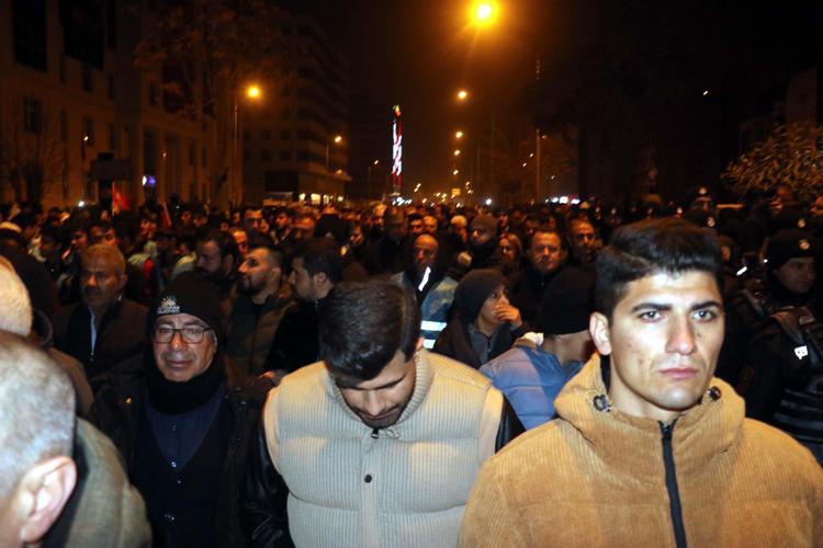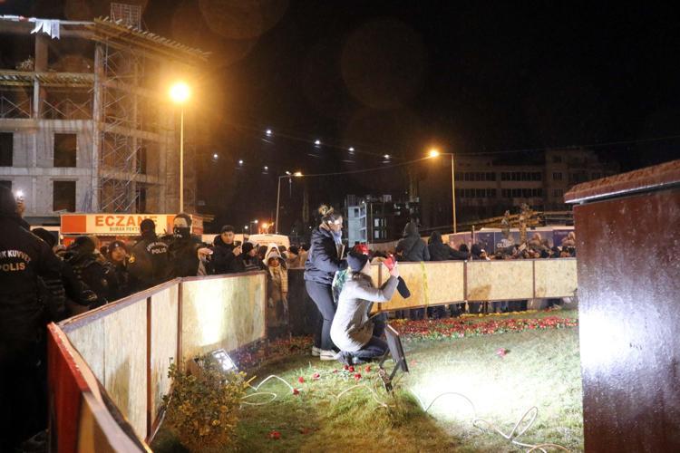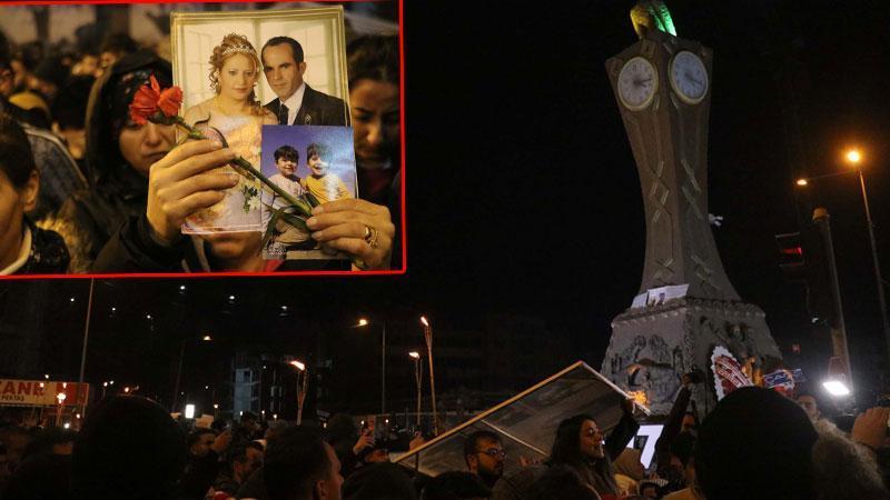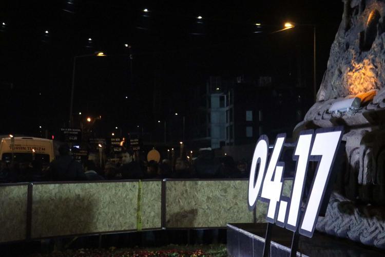 Adıyaman Valiliği önünde toplanan kabalık, sessizce yürüyerek saat 04.17’de, deprem sonrası simge haline gelen Saat Kulesi’ne ulaştı.
