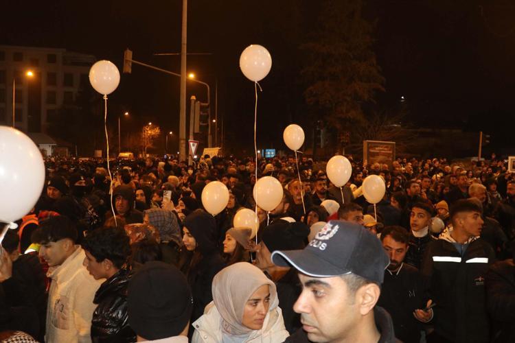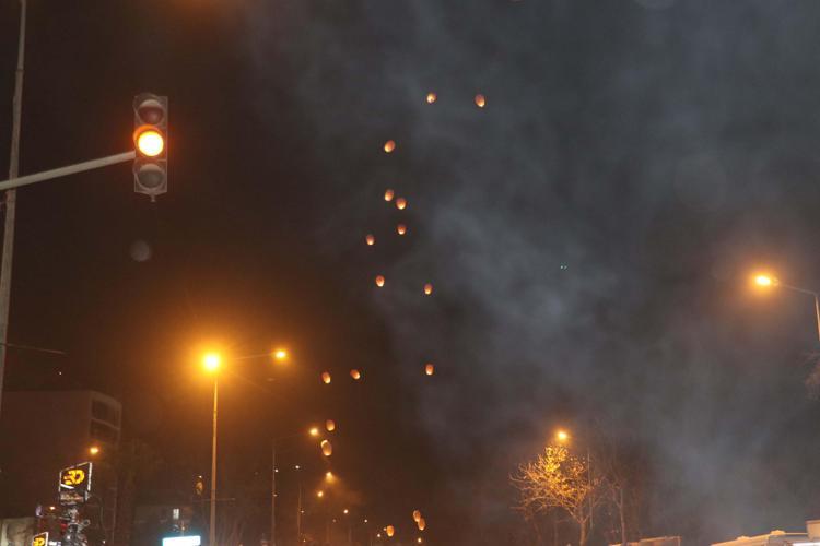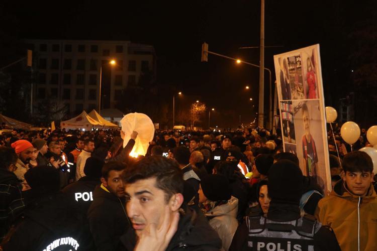 Ellerinde karanfil ve beyaz balonlar taşıyan depremzedeler, çok sayıda dilek balonunu yakıp, gökyüzüne bıraktı.