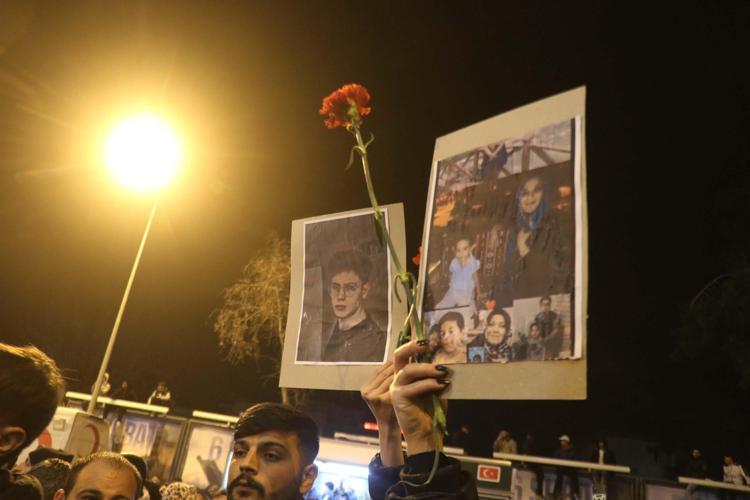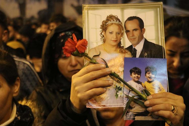 Depremde yaşamını yitirenlerin fotoğraflarını da taşıyan depremzedeler, gözyaşlarını tutamadı.