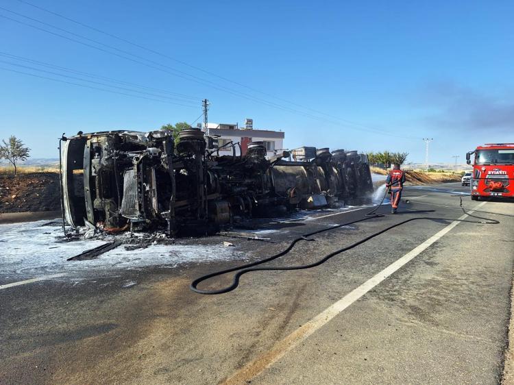Adıyaman'ın Kahta ilçesinde, devrilen tanker alev alarak yandı. Sürücüsünün son anda içinden çıktığı tankerdeki yangın, itfaiye ekiplerinin 1 saat süren müdahalesiyle söndürüldü.