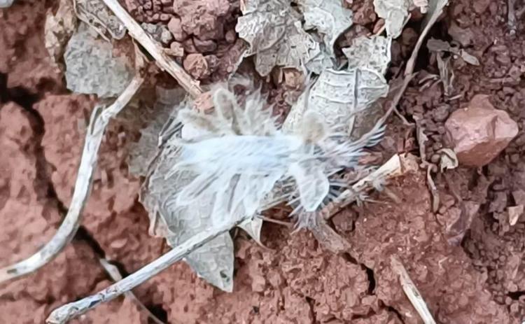 Yumurtalarını sırtlarında taşıyan, dikenli kanatları ve nohut büyüklüğündeki örümceğe benzer yapısı olan nadir görülen böcek türü, bölgedeki çoban tarafından cep telefonu kamerası ile görüntülendi.