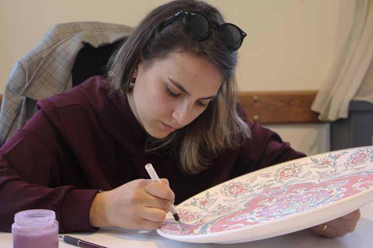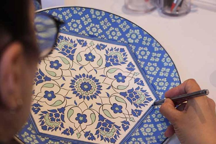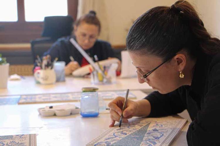 5 arkadaşımızla bu çalışmaları yürütüyoruz. 2 yıldır 'Tarihin İzleri' projesi üzerinde çalışıyoruz. Osmanlı'nın Balkanlarda yaptığı çalışmalarda tarihi yapılar, camiler, medreselerdeki geleneksel sanatlara dair araştırmaları yapıp desen analizlerini çıkartarak bunları çini ürünlere aktarıyoruz.