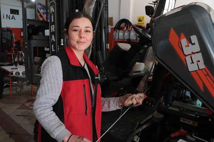 Ağabeyine özenen Melike, forklift servisinde çıraklık yapıyor