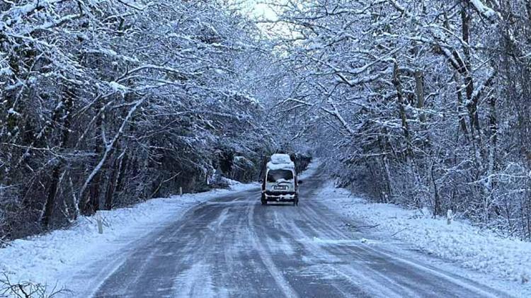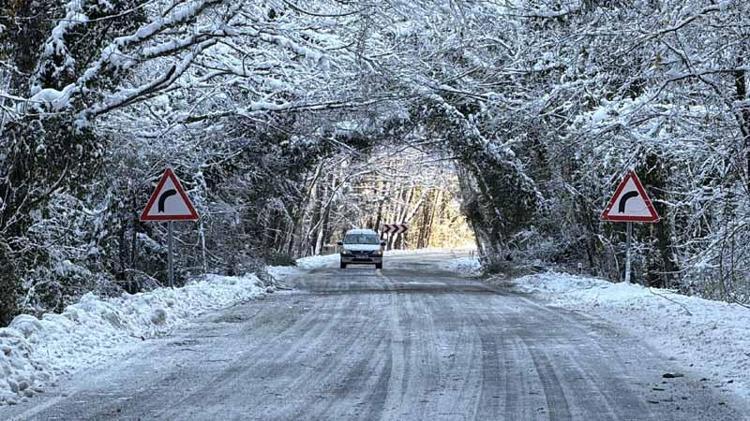 Bartın ile Karabük arasında, iki tarafı ve üstü ağaçlarla sarılı olan, 'Ağaç tünel yol' olarak bilinen kara yolundaki ağaçlar, beyaz örtüyle kaplandı.