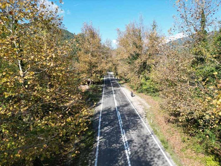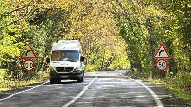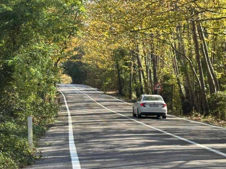 Yaprakların yola düşmesiyle görülmeye değer bir manzara sunan yoldan geçen sürücüler, keyifle yolculuk yapıyor. Yolda sıra sıra dizili olan kavlak ağaçları renk cümbüşüyle ayrı bir güzellik sunuyor.