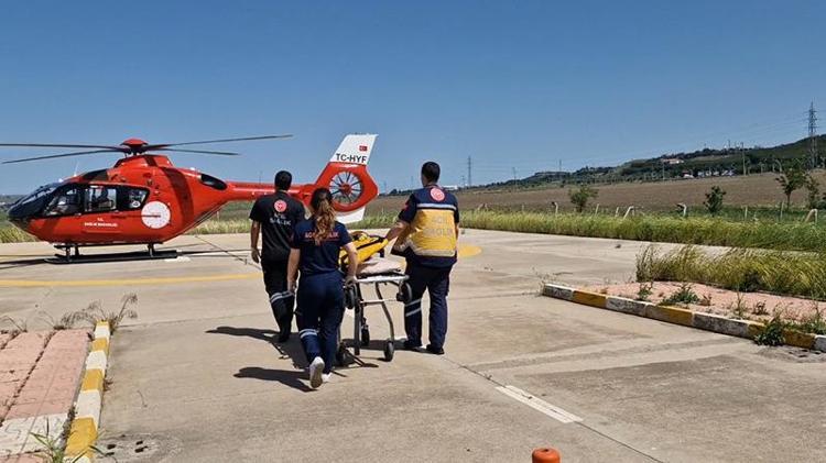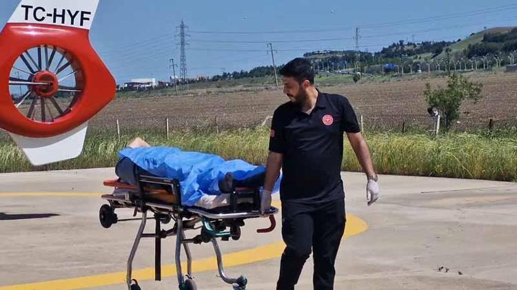 Ağaçtan düşen yaralı, ambulans helikopterle sevk edildi