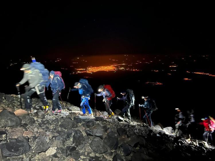 Zirve tırmanışının ilk gününde 11 kilometre yol yürüyen dağcılar, 3 bin 200 metrede ana kamp yeri oluşturdu. Hava sıcaklığının gece eksi 10 dereceye düştüğü Ağrı Dağı'nda çadırlarda kalan dağcılar, günün ilk ışıkları ile beraber yeniden tırmanışa geçti.