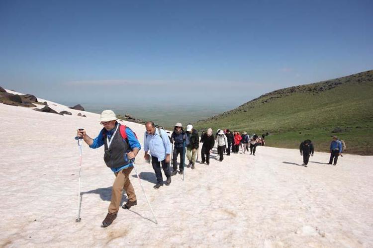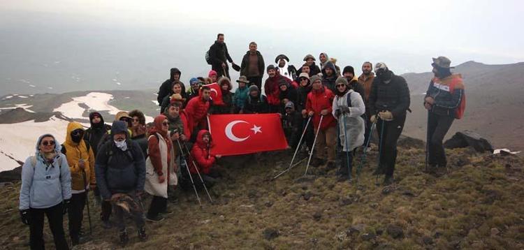Ağrı ve Patnoslu 45 dağcı da 4 bin 58 metre yüksekliğindeki Süphan Dağı'na tırmandı.