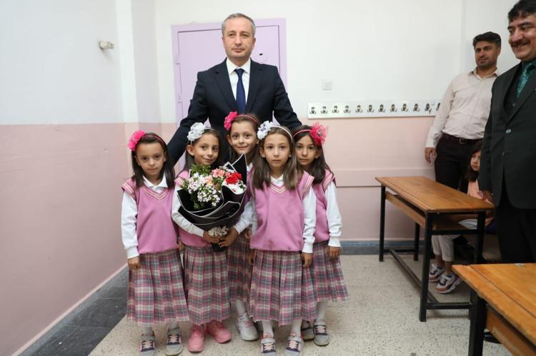 "Bugün beşiz öğrencilerimiz burada aynı sınıfta okula başlıyorlar. Biz de bugün onları okullarında ve sınıflarında ziyaret etmek için geldik. Milli Eğitim Bakanlığımızın Çerçeve Uyum Programı var. Bu program kapsamında bu hafta tüm Türkiye'de olduğu gibi Ağrı'da da öğrencilerimiz eğitim ve öğrenim görecekler.