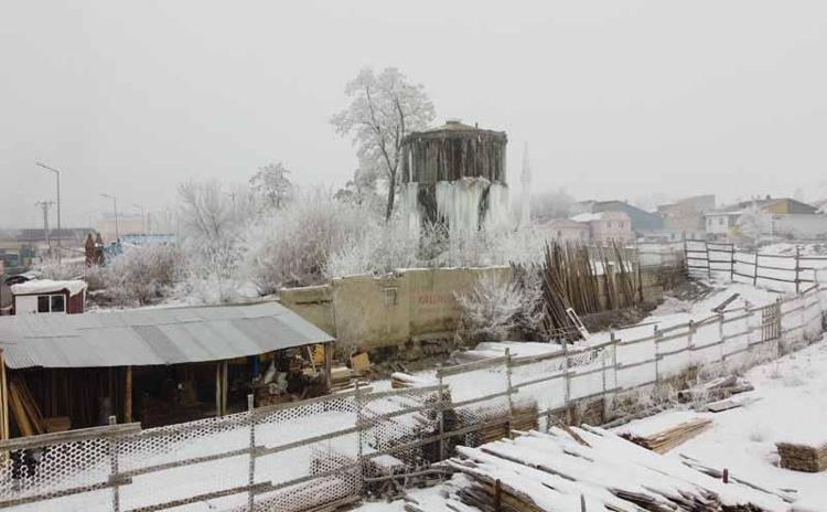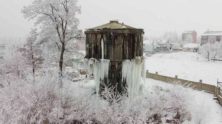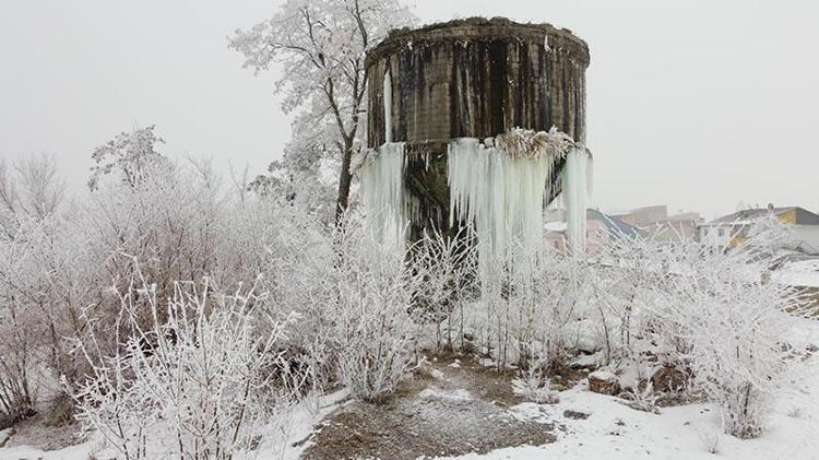 Kazım Karabekir Mahallesi'nde bulunan ve yaklaşık 20 metre yüksekliğe sahip, kullanılmayan su deposu, buzla kaplandı. Kent merkezinde de soğuk havanın etkisiyle buz kütleleri görüldü.