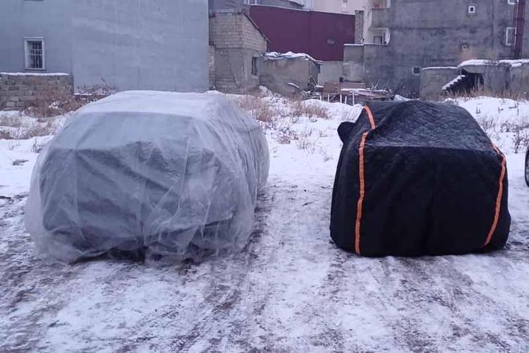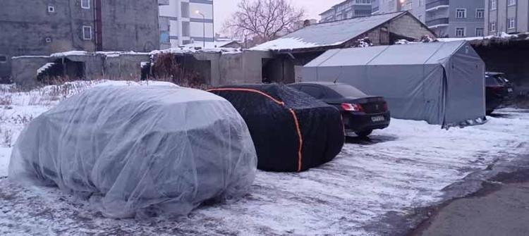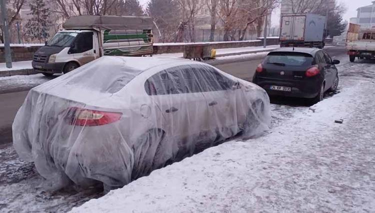 Vatandaşlar, araçlarını battaniye ve branda ile örterek dondurucu soğuklardan korumaya çalıştı.