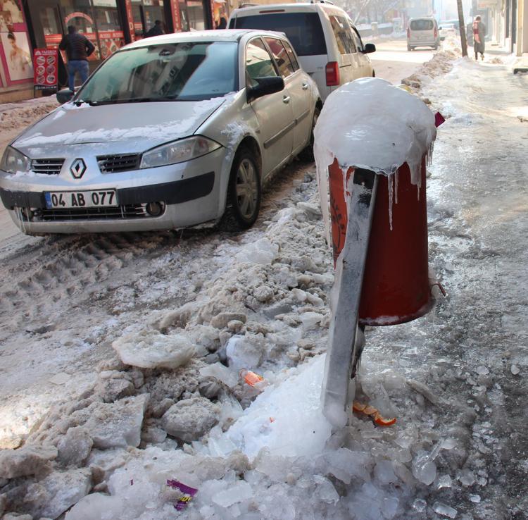 Ağrı’da hava sıcaklığı sıfırın altında 23 dereceye kadar düştü. Kentteki süs havuzları dondu. Bazı sürücüler, araçlarını naylon ve brandalarla sararken, binaların çatılarından sarkan buzların boyu 2 metreye ulaştı.