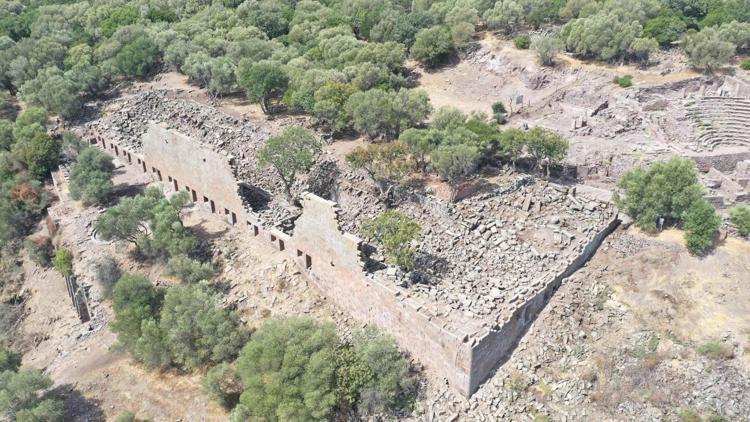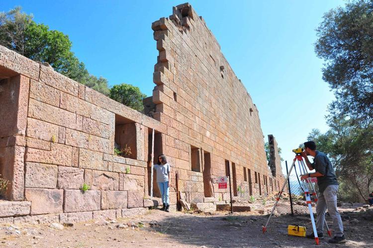 2 bin 200 yıllık. 80 metre uzunluğunda, yüksekliği 11 metre, orijinalinde ise 15 metre olması gerekiyor. Günümüze kadar en iyi şekilde korunarak, kısmen de olsa ayakta kalan bir taş bina. Kentin en simge yapılarından ve 'Aigai' adını duyan herkesin aklına gelebilen bir yapı. O bakımdan bizim için de önemli. Gerek insan gerekse de doğa koşulları nedeniyle çok fazla tahribat gören yapının gelecek nesillere aktarılabilmesi için ilk olarak belgeleme çalışmalarına başladık" dedi.