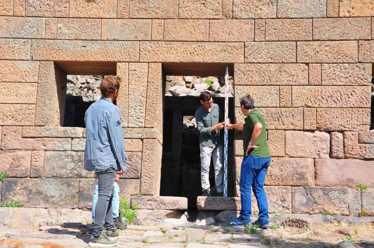Çünkü binanın yüksek kısmındaki taşlar yerlerinden oynamış durumda. Büyük ve kapsamlı bir çalışma sürdüreceğiz. Ekibimize, Alman Arkeoloji Enstitüsü'nün Türkiye'deki müdür yardımcısı ve ekibi de destek veriyor. Kendisi bu tür kazılarda mimar olarak çalışıyor.