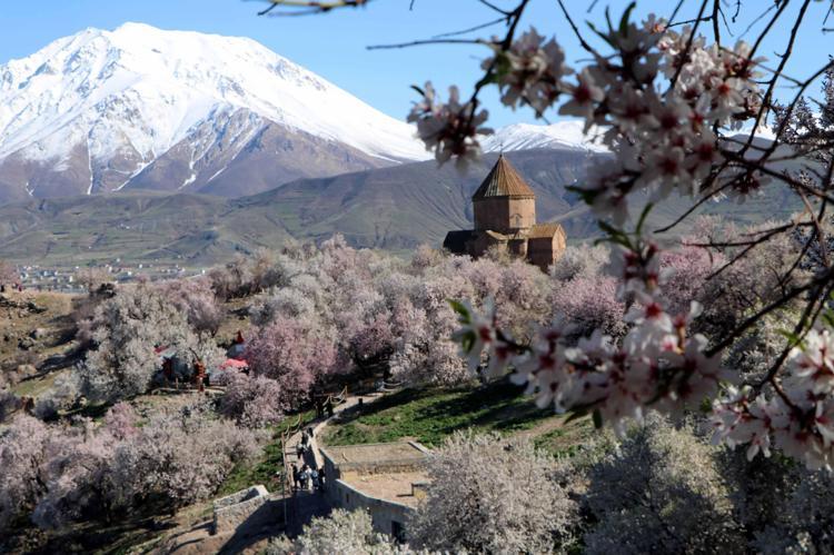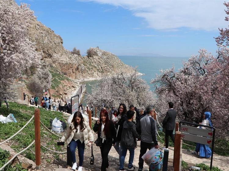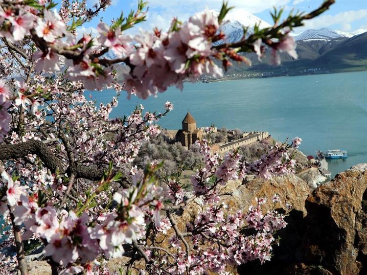 Van Gölü'nde bulunan ve badem ağaçlarının çiçeklerinin açmasıyla pembe ve beyaza bürünen Akdamar Adası'nda '3'üncü Badem Çiçeği Festivali' başladı. Manzarayı görmek isteyenler adaya gelip, bol bol fotoğraf çektirdi.