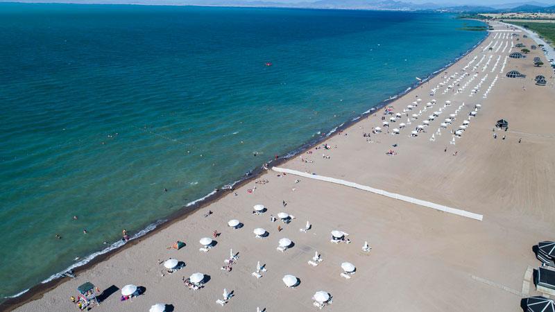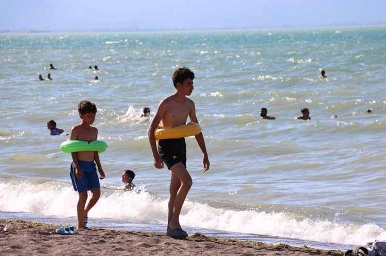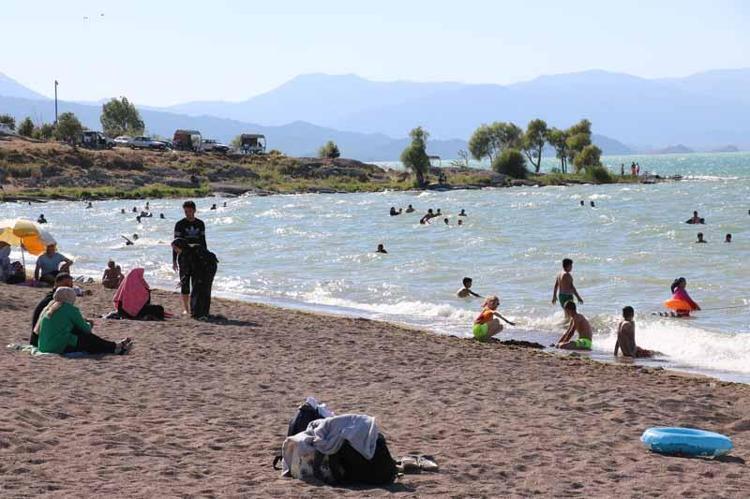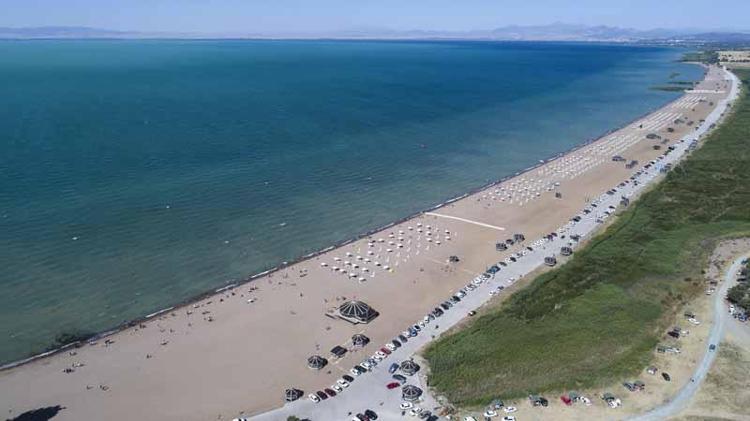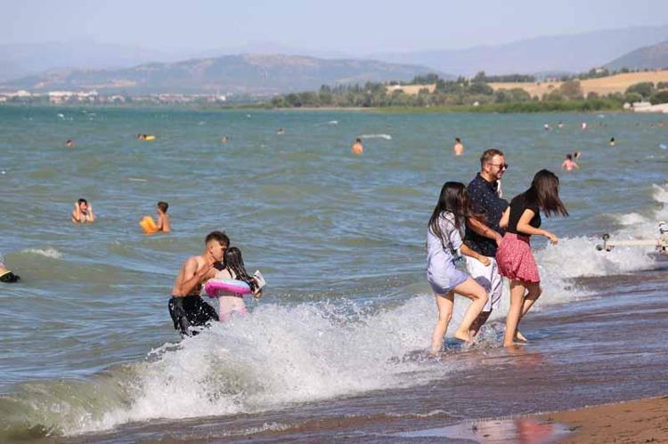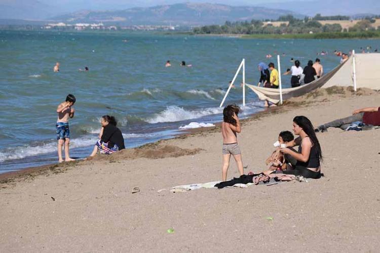 Konya Ovası'ndaki Beyşehir Gölü sahili, Akdeniz sahillerini aratmıyor. Karaburun Plajı'na gelenler, gölde yüzüp sahilde güneşleniyor. Kocaeli'den gelen Kübra Deniz, "Sosyal medyada gördüm ve Gebze'den geldim. Antalya'dan daha iyi diyebilirim plaj olarak. Burası Konya'nın denizi" dedi.