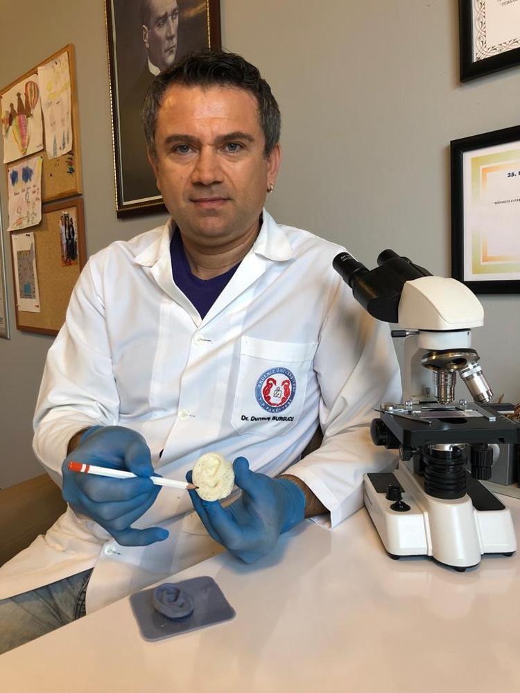 Projede dış kulak dokusunu 3D modelleme yöntemi ile 3 boyutlu halde laboratuvarda çalıştıklarını kaydeden Dr. Burgucu, mühendislerin desteği ile 3 boyutlu yazıcıda kalıp oluşturduklarını söyledi.