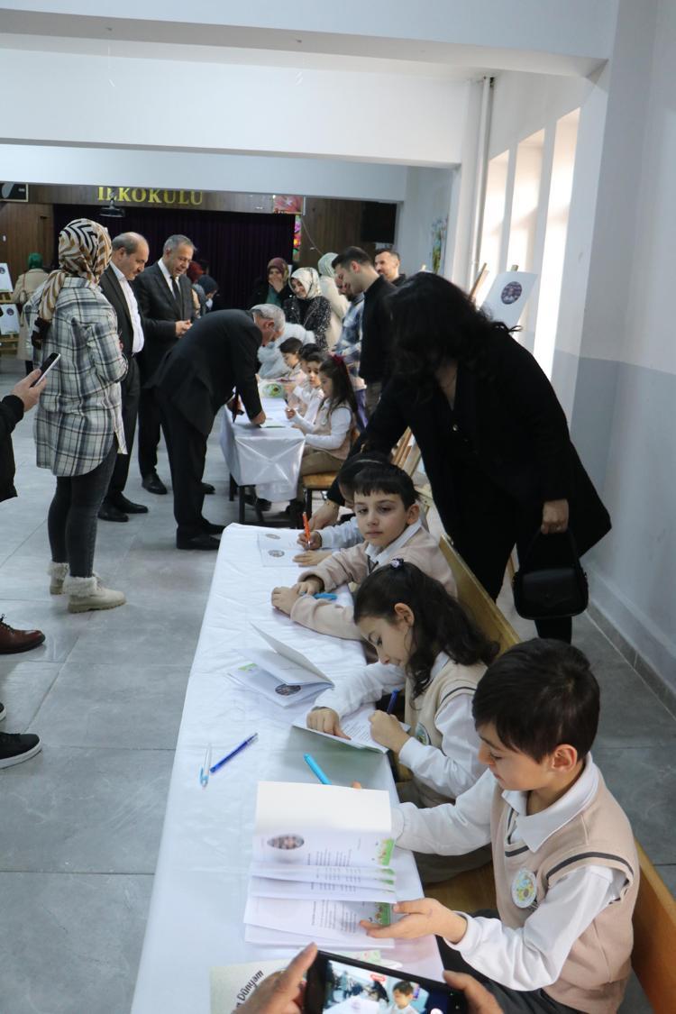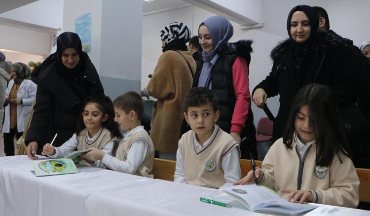 2’nci sınıf öğrencileri, şiir kitapları için imza günü düzenledi. Yakutiye İlçe Milli Eğitim Müdürü Abdurrahman Gazioğlu, okul yönetimi, öğretmen ve velilerin katıldığı imza gününde, çocuklar kitapta yer alan şiirlerinin altını imzaladı. Okul salonundaki etkinlikte çocuklara kitap imzalatan davetliler, DMD hastası Ahmet Sami Yıldırım için kurulan standa da bağışta bulundu.