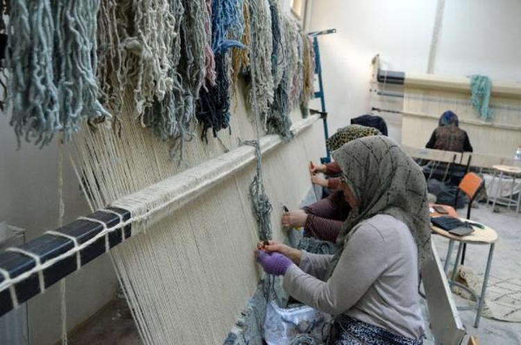 Aksaray'da kadınlar tarafından dokunan Türk motifli halılar, başta ABD olmak üzere İngiltere ile İtalya'ya ihraç ediliyor. Özellikle ev kadınların yoğun ilgi gösterdiği halı dokuma atölyesinde ders veren eğitimen Fadime Pektaş, "Tamamen kök boyadan yapıyoruz. Doğal halılarımızı sadece koyun yününün renginden yapıyoruz. 10 tane tezgahımız var, 30 kadın çalışıyor" dedi.