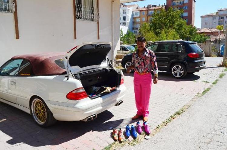 Hollanda’da yaşayan, tatil için memleketi Aksaray’a gelen gurbetçi Kadir Demir (64), renkli kıyafet tercihiyle dikkat çekiyor. Çevresinde 'Modacı Kadir' olarak tanınan Demir, sadece ayakkabılarının fiyatının 14 bin euro olduğunu belirterek, “1972 yılından bu yana bu şekilde renkli kıyafetler giyiyorum. Benim en büyük alışkınlığım bu ve bırakamıyorum. Ben elbise ve ayakkabılarıma bir daire parası harcadım" dedi.