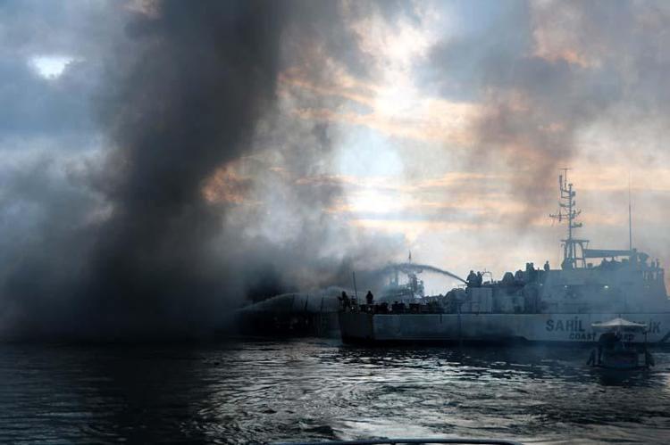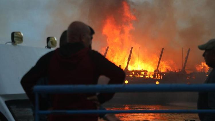 Teknelerde soğutma çalışması sürerken, yangının çıkış nedenini belirlenmesi için inceleme başlatıldı.
