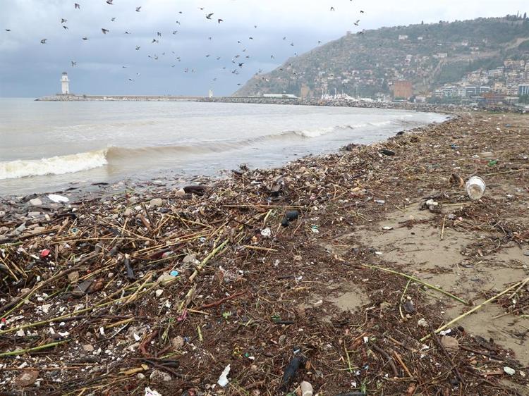 Antalya'nın Alanya ilçesinde etkili olan sağanak, fırtına ve dev dalgalar, çevre kirliliğini gün yüzüne çıkardı. Akarsuların taşıdığı ve deniz dibinde biriken atıklar, fırtına sonrası sahile vurdu. Kentin en işlek plajlarından Galip Dere Halk Plajı'nda atık yığınları oluştu.