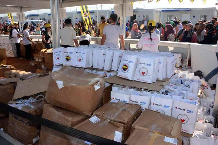 Açılış öncesi Fenerbahçe Spor Kulübü ile Koç Holding şirketleri tarafından hazırlanan binlerce gıda, hijyen, temizlik, oyunca, kırtasiye ve kitap paketleri konteyner kent sakinlerine dağıtıldı.