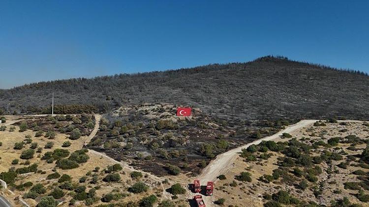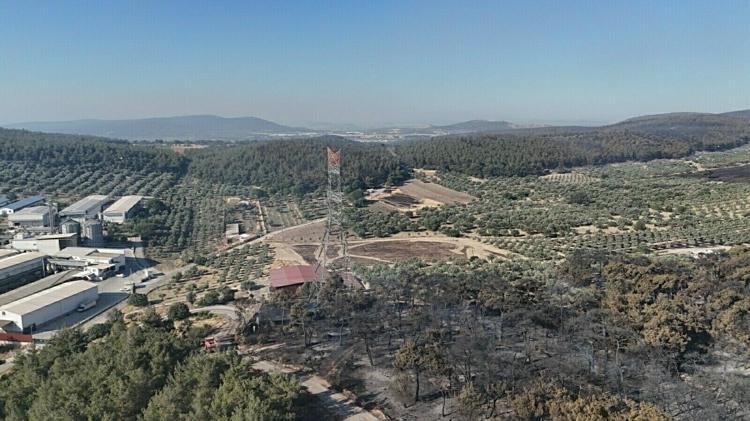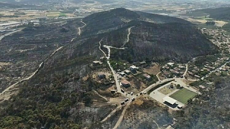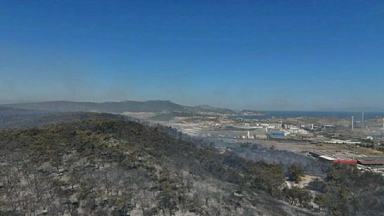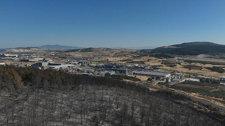 İzmir'in Aliağa ilçesinde, sanayi bölgesinin yakında çıkıp ormana sıçrayan ekiplerin müdahalesiyle 11 saatte kontrol altına alınan yangında zarar gören alanlar dronla görüntülendi. Çöpleri temizlemek amacıyla yaktığı ateşle yangına sebebiyet verdiği belirlenip, gözaltına alınan M.E.'nin ise jandarmadaki işlemlerinin sürdüğü bildirildi.