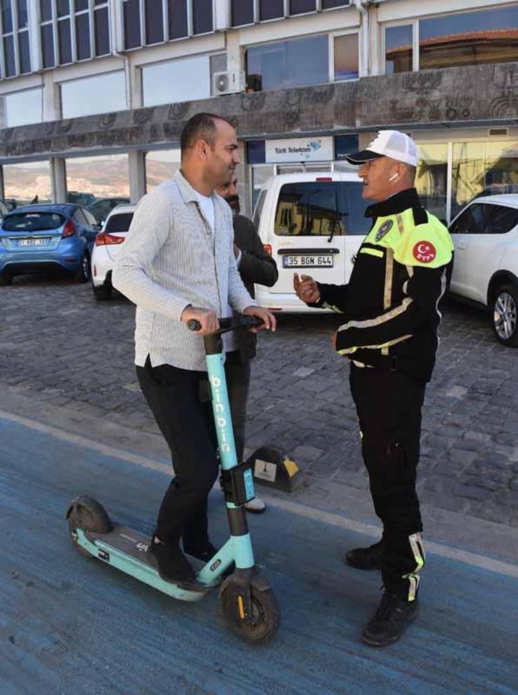 Ulaşım araçlarından skuterlerin kullanımı gün geçtikçe artarken, denetimler de sıklaştırıldı. İzmir'de 2022 yılı boyunca alkollü skuter kullandığı tespit edilen 610 sürücüye cezai yaptırım uygulandı. İzmir İl Emniyet Müdürlüğü Trafikten Sorumlu İl Emniyet Müdür Yardımcısı Şamil Özsagulu, Karayolları Trafik Kanunu 66'ncı maddesi gereğince skuter kurallarını ihlal eden kişilere 427 TL ceza kesildiğini dile getirdi. Skuterlerin kullanım kuralları hakkında bilgi veren Özsagulu, "Bu araç sürücülerinin 15 yaşından küçük olmaması, aynı anda skuter üzerinde bir kişiden fazla olmaması gerekiyor. Bisiklet yolları varsa bu araçların muhakkak bisiklet yollarını kullanması gerekiyor. Bisiklet yolu haricindeki yollarda hız limiti 50 kilometrenin üzerinde olmamalı.