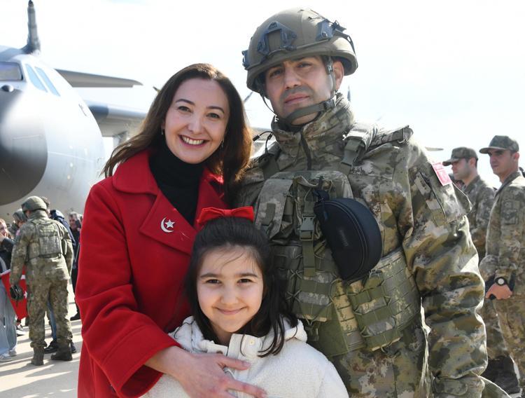 Tatbikata katılacak eşini, kızıyla birlikte uğurlamaya gelen Yasemin Duygu Bolat, "Bugün burada kızımla hem eşimi hem de görev arkadaşlarını uğurlamak için bulunuyoruz. Kısa bir süre de olsa ayrı kalacak olmanın bir hüznü var. Bunun yanında çok güçlü bir duygu da hissediyorum. Çünkü eşim hem ülkemizi hem de Türk Silahlı Kuvvetleri'ni uluslararası bir tatbikatta temsil edecek. Bu, her ailenin yaşayamayacağı bir onur. Eşimin birliğini tatbikat için çok iyi şekilde hazırlandığını yakınen biliyorum. Çok büyük bir ciddiyetle çalıştılar ve eğitimlerini tamamladılar. Emeklerinin karşılığını alacaklarına, tatbikatta Türk askerini bilgi, disiplin ve kararlılığını en güzel şekilde temsil edeceklerine yürekten inanıyorum. Bizler için vatan sevgisi her şeyin üstündedir. Ayrılıklar geçicidir ama ülkeye hizmet etmenin verdiği manevi güç kalıcıdır. Rabb’im hepsinin yanında olsun" dedi.