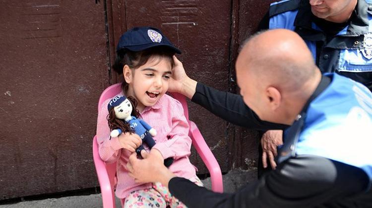 Merve'ye oyuncak bebek ve polis kepi hediye eden polis, onu Yeşiloba Hipodromu'na da ekip aracıyla götürüldü.