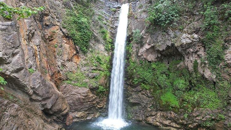 Amanos Dağları'nın eteğindeki Karaçay Şelalesi dron ile görüntülendi
