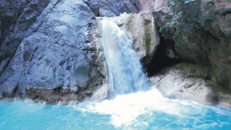 Amanos Dağları'nın eteğindeki Sarısu Şelalesi dron ile görüntülendi