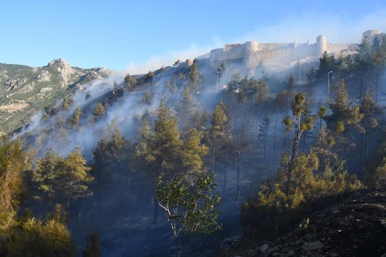 Amasya'da Harşena Kalesi'nin yakınındaki ormanda yangın çıktı.